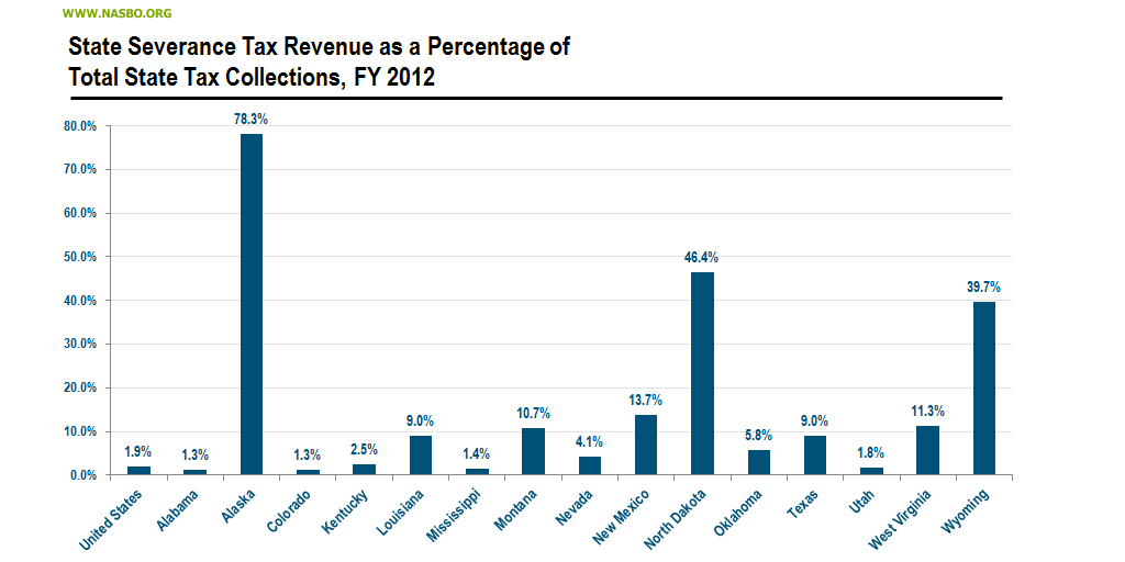 The Census data does not report severance taxes by commodity, so it is difficult to know for sure how much revenue from severance taxes is directly attributable to oil as opposed to coal, natural gas or some other natural resource. However, the price of oil plays an important role in the budget for Alaska, North Dakota, Louisiana, New Mexico and Texas. States such as West Virginia, Wyoming and Kentucky are more reliant on severance taxes from coal rather than oil.
