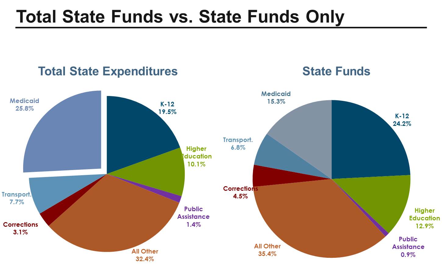 Medicaid in fiscal 2014 also represented 25.8 percent of total state expenditures (general funds, other state funds, bonds, and federal funds combined), the highest level since NASBO began collecting data in its State Expenditure Report. In fiscal 2009, Medicaid surpassed elementary and secondary education as the largest category of total state spending, due to the rise in health care costs. While Medicaid is now the largest category of total state spending (which includes federal funds), elementary and secondary education remains by far the largest category of spending from states’ own funds, which includes both general funds and other state funds.